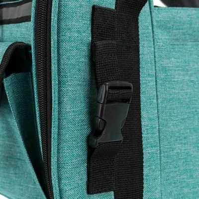 Bolso para transportar mascotas de máximo 7 kg. Con entrada lateral grande, cojín cómodo y ventana de red integrada en 3 de sus lados. Con bandolera y asa. Color: verde.